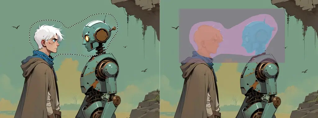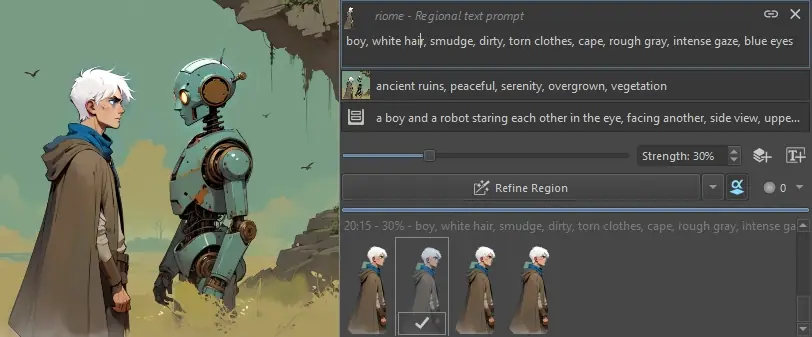- Improved inpaint workflow. Regions are not only useful for generating the whole image! It is quite common to go back and forth between different selections and refine each individually. With regions you don’t have to swap out text, control layer and reference images each time. You can assign them per area/layer instead.
